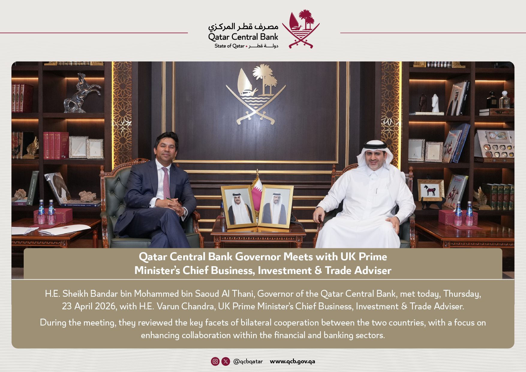 Qatar Central Bank Governor Meets with UK Prime Minister’s Chief Business, Investment & Trade Adviser